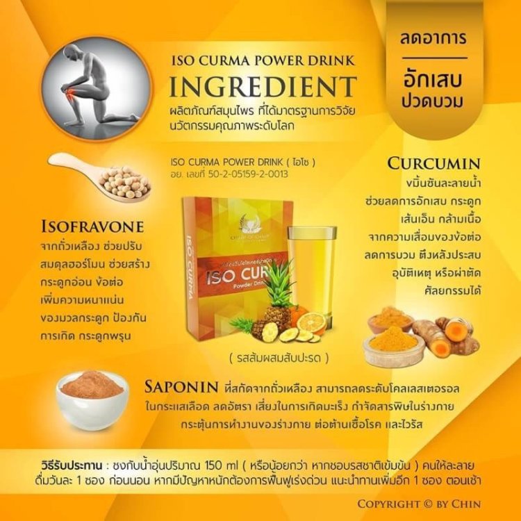 ขมิ้นชันละลายน้ำ ช่วยลดการอักเสบ กระดูก เส้นเอ็น กล้ามเนื้อจากความเสื่อมของข้อต่อ ลดการบวม ตึงหลังประสบอุบัติเหตุ หรือผ่าตัดศัลยกรรมได้